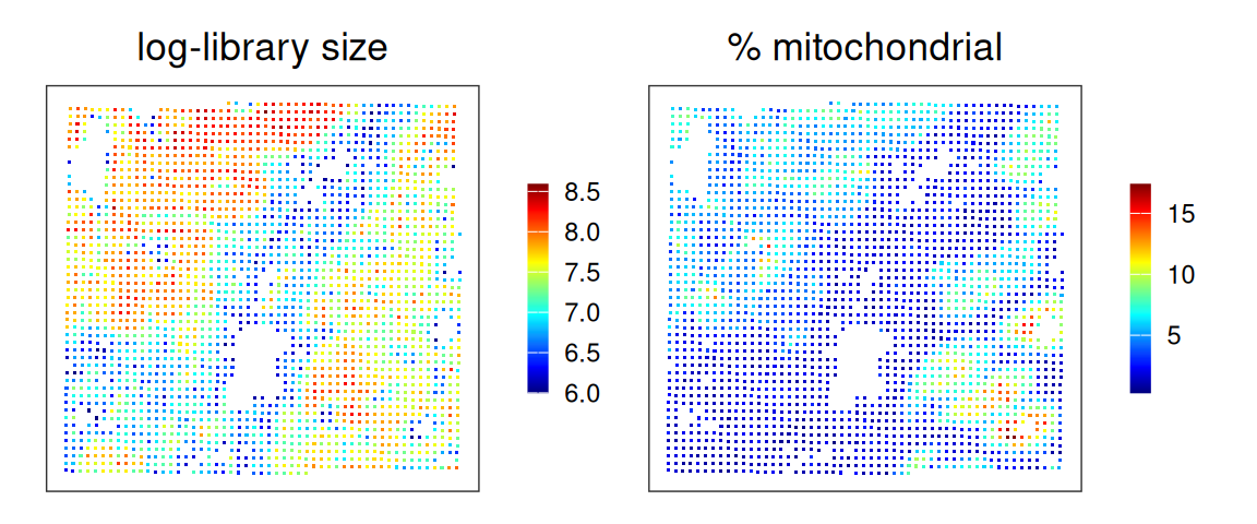 # retrieve dataset from OSF repositoryid<-"Chromium_HumanColon_Oliveira"pa<-OSTA.data_load(id)dir.create(td<-tempfile())unzip(pa, exdir=td)# read into `SingleCellExperiment`fs<-list.files(td, full.names=TRUE)h5<-grep("h5$", fs, value=TRUE)sce<-read10xCounts(h5, col.names=TRUE)# add cell metadatacsv<-grep("csv$", fs, value=TRUE)cd<-read.csv(csv, row.names=1)colData(sce)[names(cd)]<-cd[colnames(sce), ]# use gene symbols as feature namesgs<-rowData(sce)$Symbolrownames(sce)<-make.unique(gs)# exclude cells deemed to be of low-qualitysce<-sce[, sce$QCFilter=="Keep"]# subset cells from same patientsce<-sce[, grepl("P2", sce$Patient)]sce