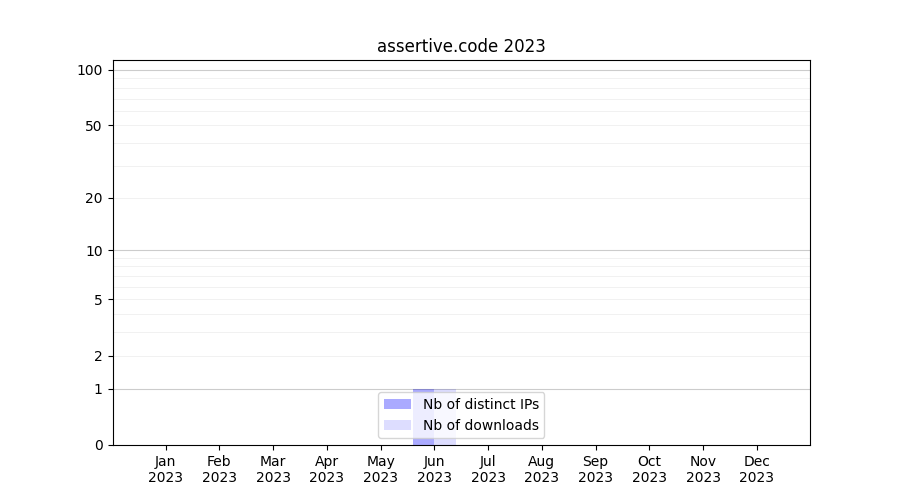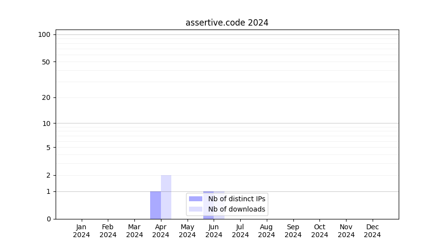 Number of downloads for experiment package assertive.code, year by year, from 2025 back to 2014 (years with no downloads are omitted):