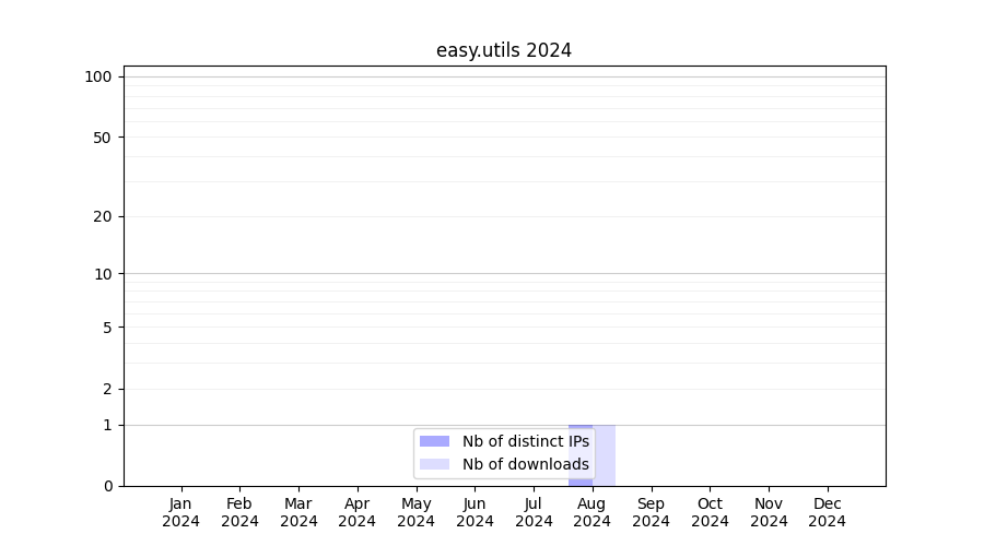 Number of downloads for experiment package easy.utils, year by year, from 2025 back to 2014 (years with no downloads are omitted):